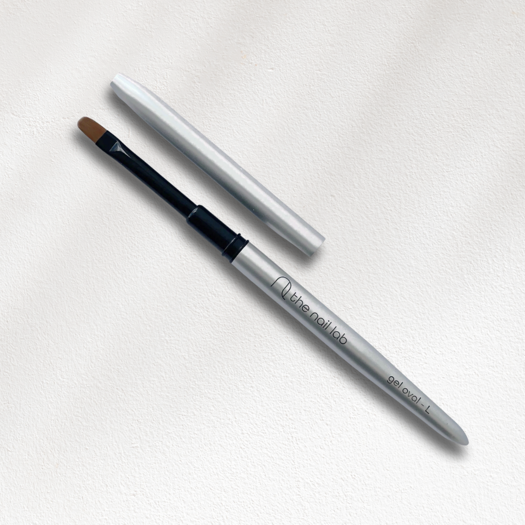 The Gel Oval - L is a large sized synthetic bristle brush with a curved edge - ideal for the application of hard gel or any other gel, for that matter. She can also be used for colour application. The curved edged makes her incredibly useful for applying colours and the shape fits the cuticle area like a hand in a glove!