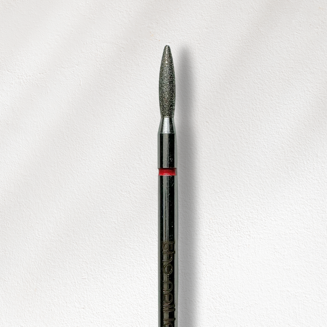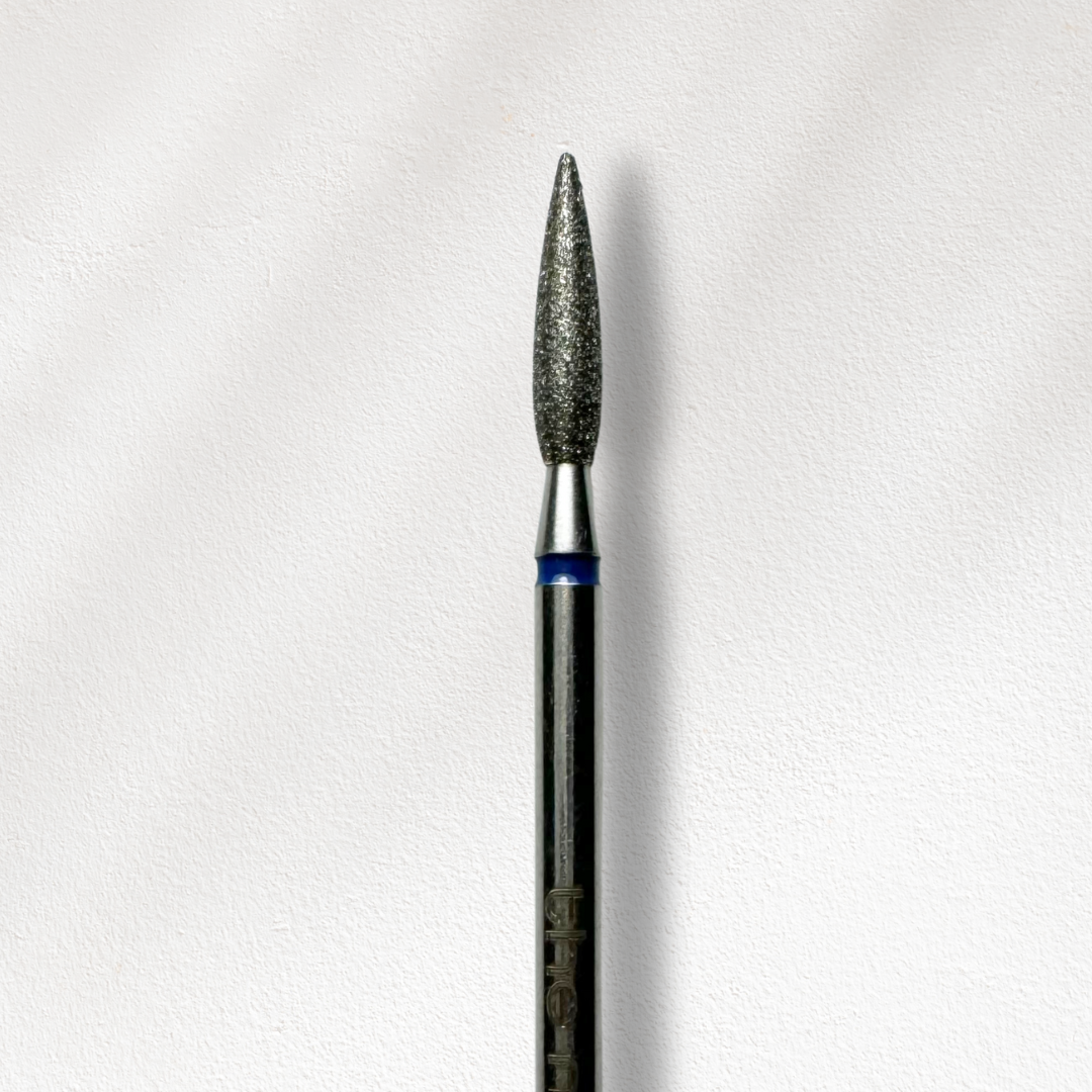 This flame shaped bit is designed to lift the proximal nail fold and clean non-living tissue from the nail plate.